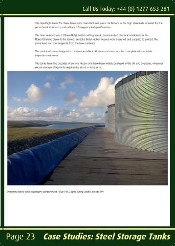 Mono-Ethylene Glycol to be stored. Bespoke Butyl rubber sleeves were designed and supplied to protect the