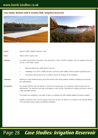 Summary: A complete impermeable lining system was required for a large 110,000m irrigation reservoir supplying three golf