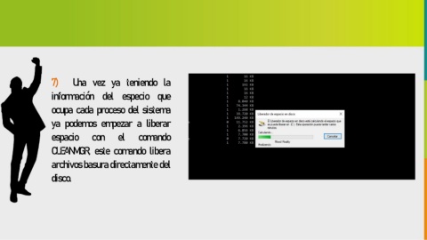 7) Una vez ya teniendo la información del especio que ocupa cada proceso del sistema ya podemos empezar a liberar espacio con el comando CLEANMGR, este comando libera archivos basura directamente del disco. GC-F-004 V.01
