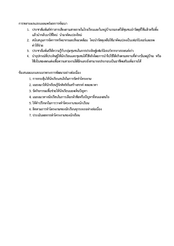 1. ประชาสัมพันธขาวสารเสียงตามสายภายในโรงเรียนและในหมูบานรณรงคใหชุมชนนําวัสดุที่ใชแลวหรือทิ้ง