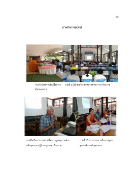 241 ภาพกิจกรรม(ตอ) หัวหน้าโครงการเซ็นต์ชื่อตรวจ ภาพที่ 5 ผู้เข้าร่วมวิจัยรับฟังการบรรยายจากวิทยากร เยี่ยมโครงการ ภาพที่ 6 วิทยากรบรรยายเรื่องการดูแลสุขภาพด้วย ภาพที่ 7 วิทยากรบรรยายเรื่องการดูแล หลักพุทธธรรม(ผู้ชํานาญการทางวิชาการ) สุขภาพด้วยหลักพุทธธรรม