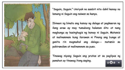 magbunga ay kasinghugis ng kamay ni Saguin. Matamis