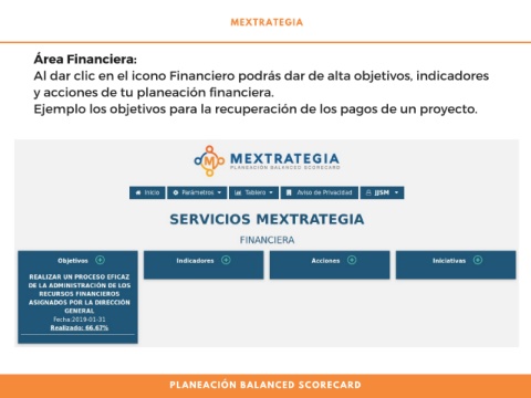 Al dar clic en el icono Financiero podrás dar de alta objetivos, indicadores