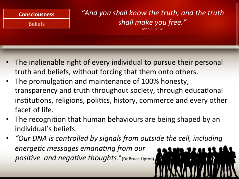 • The promulga8on and maintenance of 100% honesty, transparency and truth throughout society, through educa8onal ins8tu8ons, religions, poli8cs, history, commerce and every other facet of life.