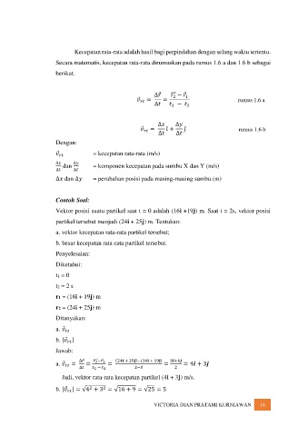 Secara matematis, kecepatan rata-rata dirumuskan pada rumus 1.6 a dan 1.6 b sebagai