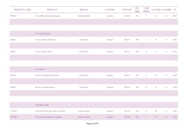 PRODUCT CODE PRODUCT REGION COUNTRY VINTAGE COLOUR CLOSURE T3