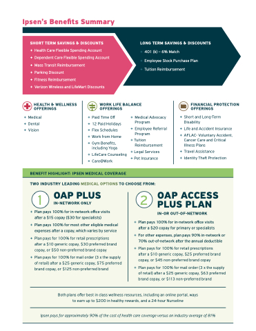 Ipsen pays for approximately 90% of the cost of health care coverage versus an industry average of 81%