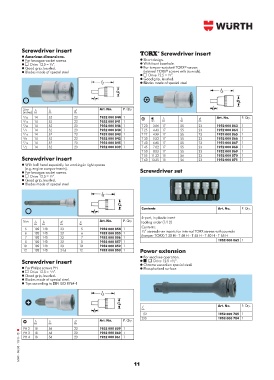 Screwdriver insert i j Drive 12.5 = ⁄ 2”.