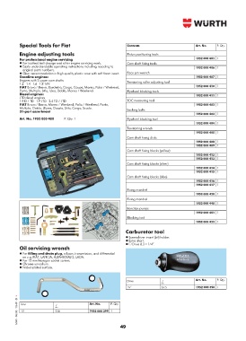 Special Tools for Fiat Contents Art. No. P. Qty.