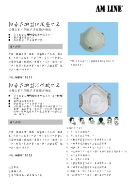 粉塵與煙霧:碳酸鈣、高嶺土、水泥、纖維、硫 3. 調整頭帶鬆緊並確定口罩確實罩住口鼻