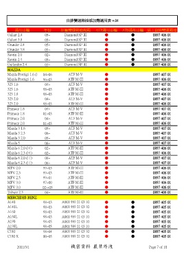 適用車種 年份 原廠變速箱油規範 ATP適用車種 ATS適用車種 福士自排變速箱油