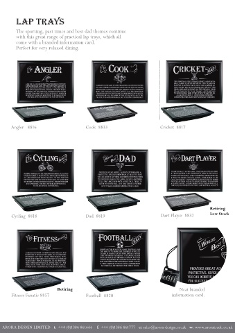 ARORA DESIGN LIMITED t: +44 (0)1386 861666 f: +44 (0)1386 861777 e: sales@arora-design.co.uk w: www.aroratrade.co.uk
