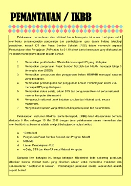 Pelaksanaan pemantauan atau khidmat bantu bersepadu ini adalah bertujuan untuk