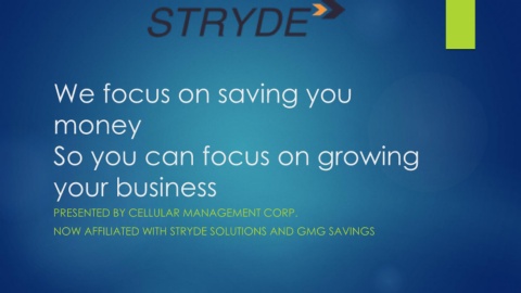 We focus on saving you money So you can focus on growing your business PRESENTED BY CELLULAR MANAGEMENT CORP. NOW AFFILIATED WITH STRYDE SOLUTIONS AND GMG SAVINGS