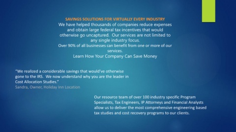 SAVINGS SOLUTIONS FOR VIRTUALLY EVERY INDUSTRY