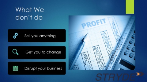 What We don’t do Sell you anything Get you to change Disrupt your business