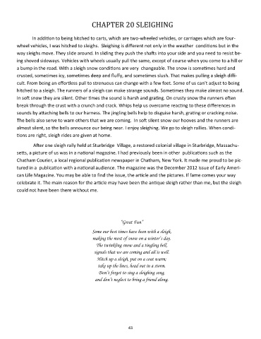 wheel vehicles, I was hitched to sleighs. Sleighing is different not only in the weather conditions but in the