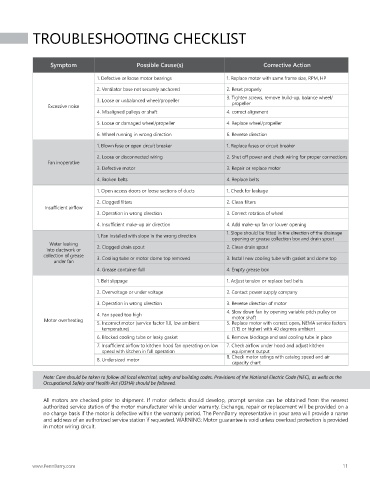 7. Insufficient airflow to kitchen hood fan operating on low 7. Check airflow under hood and adjust kitchen