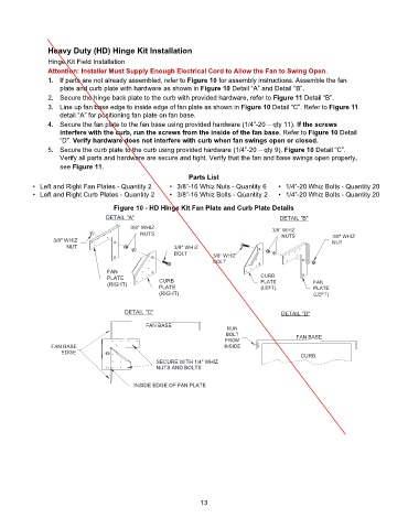 Figure 10 - HD Hinge Kit Fan Plate and Curb Plate Details