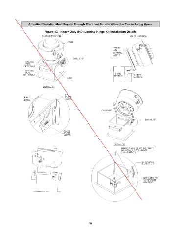 Attention! Installer Must Supply Enough Electrical Cord to Allow the Fan to Swing Open.