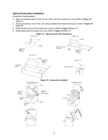 2. Secure grease box cover to the curb using provided sheet metal screws (qty 3). Refer to Figure 14