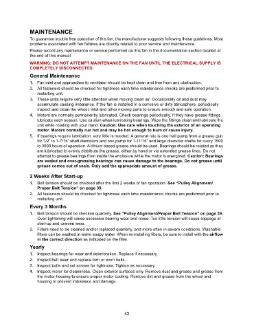 accumulate causing imbalance. If the fan is installed in a corrosive or dirty atmosphere, periodically