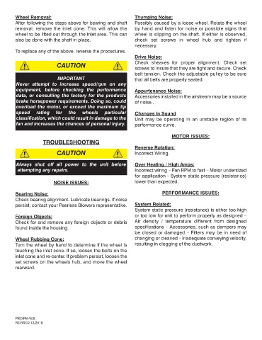 wheel to be lifted out through the inlet area. This can wheel is slipping on the shaft. If either is observed,