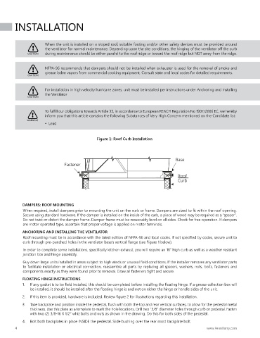 the ventilator for normal maintenance. Depending upon the site conditions, the hinging of the ventilator off the curb