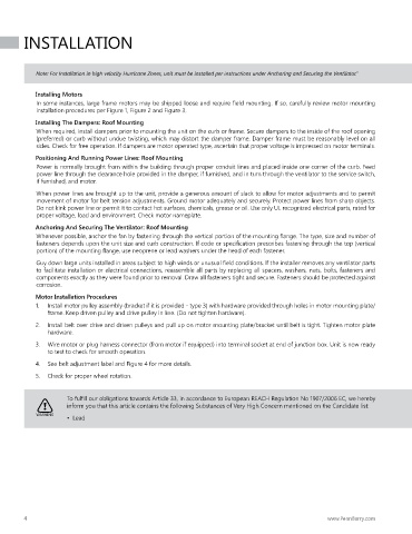 Note: For Installation in high velocity Hurricane Zones, unit must be installed per instructions under Anchoring and Securing the Ventilator.”