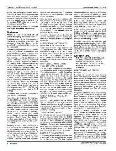 operation. Check fan speed on belt drive Blow out open type motor windings with trim balanced at the factory.
