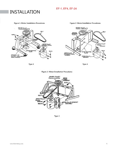 EF-1, EF4, EF-24 INSTALLATION Figure 1: Motor Installation Procedures Figure 2: Motor Installation Procedures Type 1 Type 2 Figure 3: Motor Installation Procedures Type 3 www.PennBarry.com 5
