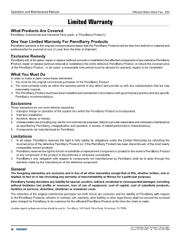 Inquiries regarding these warranties should be sent to: PennBarry, 1401 North Plano Road, Richardson, TX 75081.