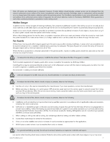 loose materials as well. Solid objects can pass through the fan and be discharged by the impeller as potentially dangerous projectiles.