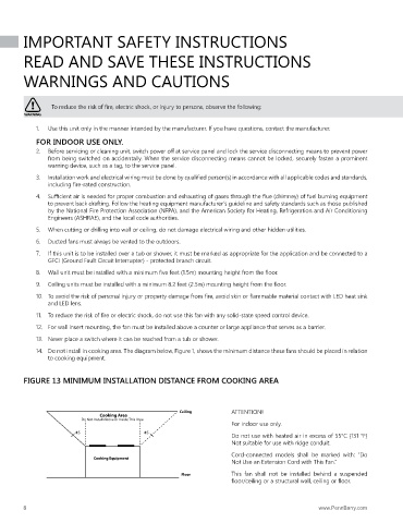 12. For wall insert mounting, the fan must be installed above a counter or large appliance that serves as a barrier.