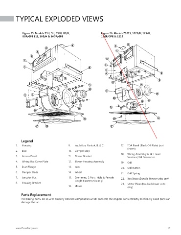 4. Wiring Box Cover Plate 12. Blower Housing Assembly 19. Grill