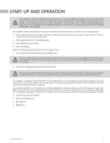 During the first eight (8) hours of operation, check the fan periodically for excessive vibration or noise. At this time, also check motor