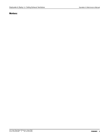 Zephyrette & Zephyr Jr. Ceiling Exhaust Ventilators Operation & Maintenance Manual Notes: 1401 North Plano Road, Richardson, Texas 75081 Phone: 972-234-3202 Fax: 972-497-0468 PENNBARRY 5