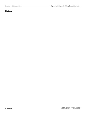 Operation & Maintenance Manual Zephyrette & Zephyr Jr. Ceiling Exhaust Ventilators Notes: 1401 North Plano Road, Richardson, Texas 75081 6 PENNBARRY Phone: 972-234-3202 Fax: 972-497-0468