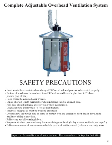 - Do not allow the power cord to come in contact with the collection hood and/or any heated