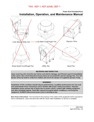 blower wheel by hand to verify free rotation and check the damper (if supplied) operates freely.