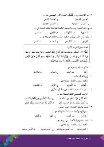 . . .. يه ةلمجلا كلتب ةبسانلما ةملكلا .موجنلا ... و ب ءامسلا الل ني ٨ . ز