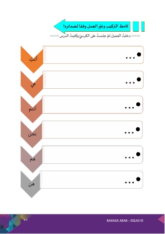 !هرئامض ل اقفو لمجلا ريغو بيكرتلا ظحلا ِ َ ===== سردلا تبتكو ي سركلا ىلع تسلج مث لصفلا تلخد ===== 11 BAHASA ARAB – KELAS IX