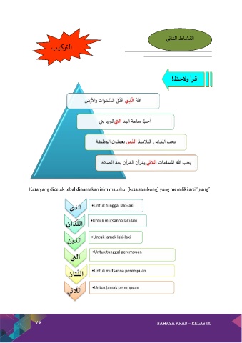 يناث لا طاشنلا بيكرتلا !ظحلاو أرقا Kata yang dicetak tebal dinamakan isim maushul (kata sambung) yang memiliki arti “yang ” 75 BAHASA ARAB – KELAS IX