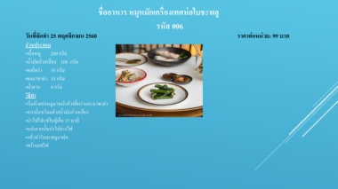 ชื่ออาหาร หมูหมักเครื่องเทศห่อใบชะพลู