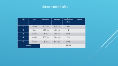 ล าดับ รายการ ปริมาณต่อจาน ราคาวัตถุดิบ ราคาเมื่อเทียบเท่า หมายเหตุ