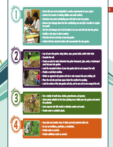 • Test the soil drainage rate in that location to be sure rain will soak into the ground.