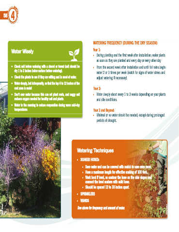 • Check soil before watering with a shovel or trowel (soil should be • From the second week after installation and until fall rains begin:
