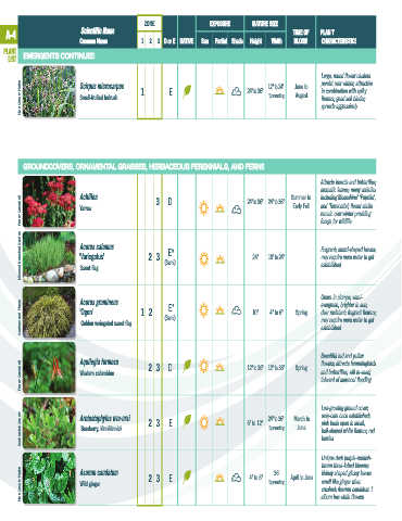 A-4 Scientific Name 1 2 3 D or E NATIVE Sun Partial Shade Height Width TIME OF PLANT
