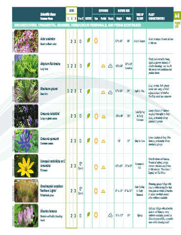 GROUNDCOVERS, ORNAMENTAL GRASSES, HERBACEOUS PERENNIALS, AND FERNS (CONTINUED) Plant