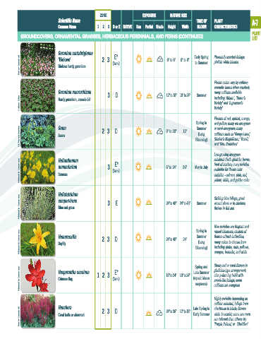 GROUNDCOVERS, ORNAMENTAL GRASSES, HERBACEOUS PERENNIALS, AND FERNS (CONTINUED)                                                             Plant